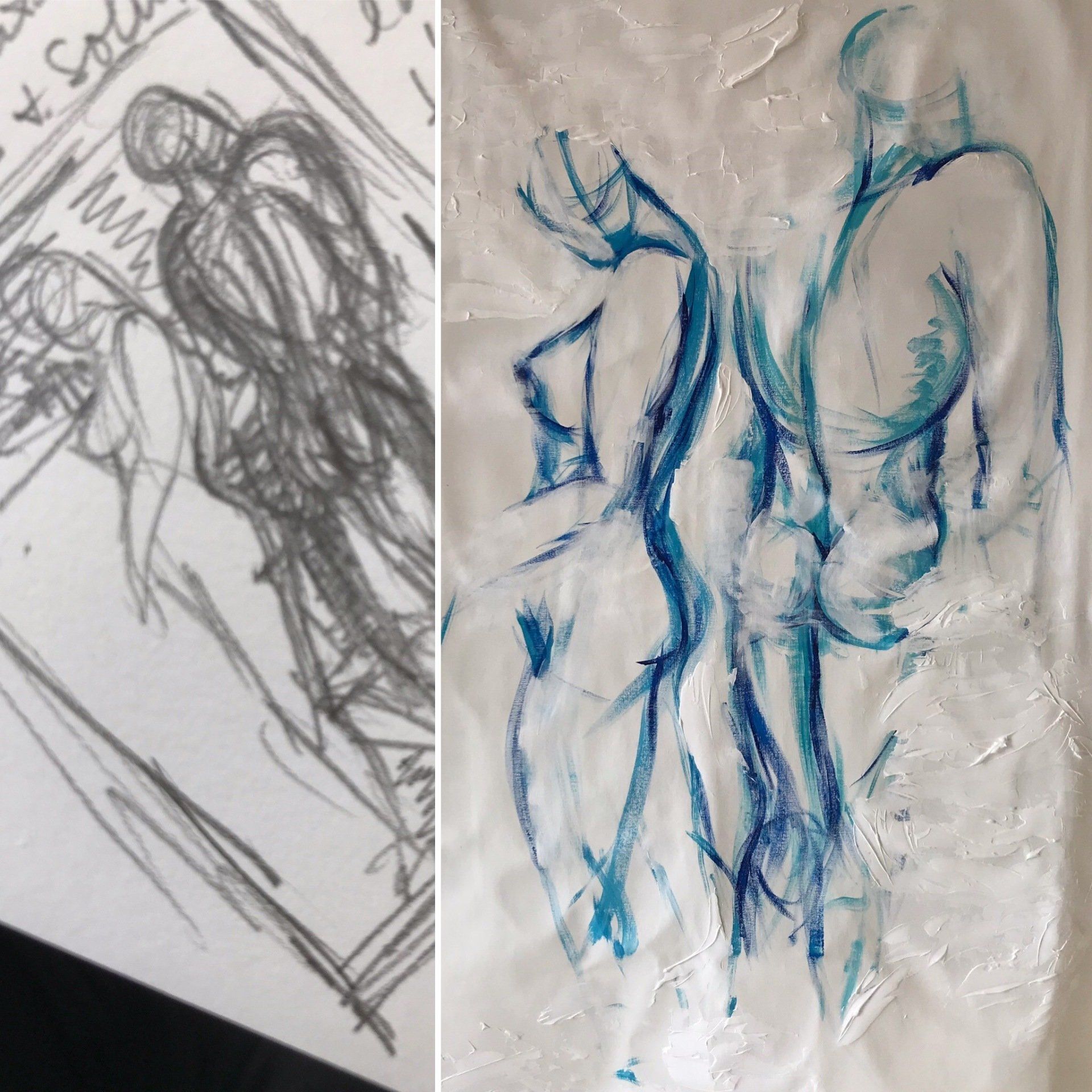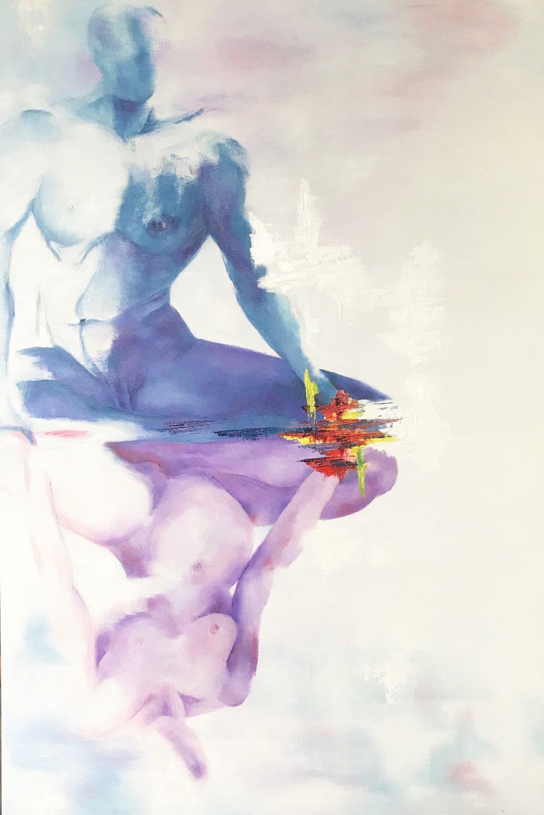 In a mere two weeks I concepted a series of paintings (8 pieces) that talks about how we affect each other, looking at the levels of comfort and influence we have with each other. Reflections in the water, the quiet of the area and solitude dictated the textures and dynamics of the figures.