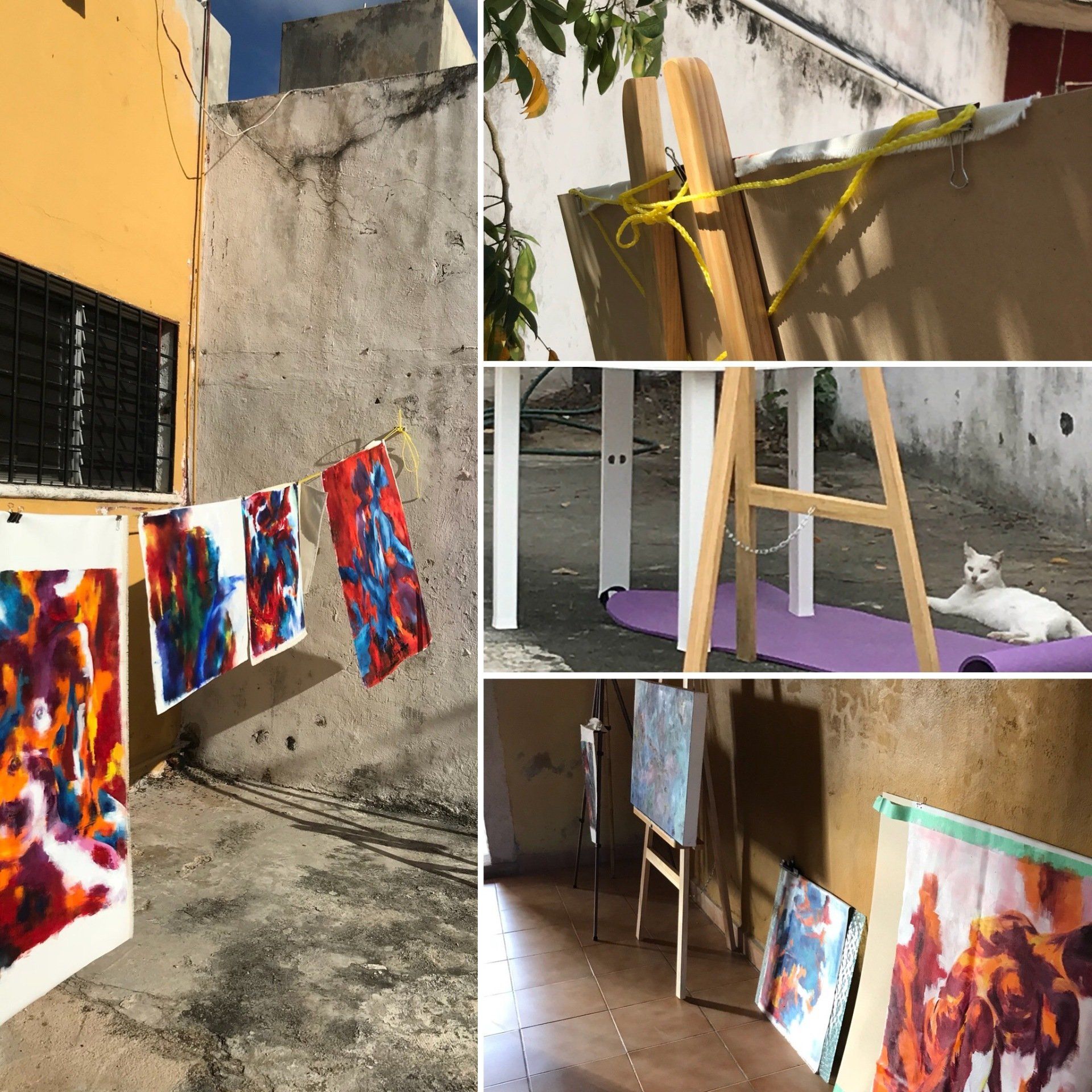I was immediately struck by the intense heat of this island. Settling in to an airbnb was easy - a wonderful host family (grandaughter painted with me a couple of times), and I met up with a friend living there that I went to OCAD with - we picked up like it was yesterday! Climate was the biggest influence factor on my work here. From the strong winds and blowing clouds to light rains, I found the concepts for my paintings were direct reflections of these elements. I worked up 15 paintings in this month - many larger than I had anticipated - I had to hunt around town for canvas and primer to continue in the last week and getting them back to Canada was a bit of a challenge!