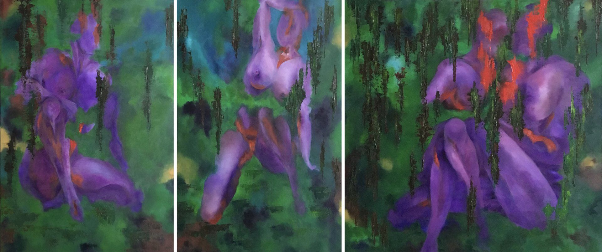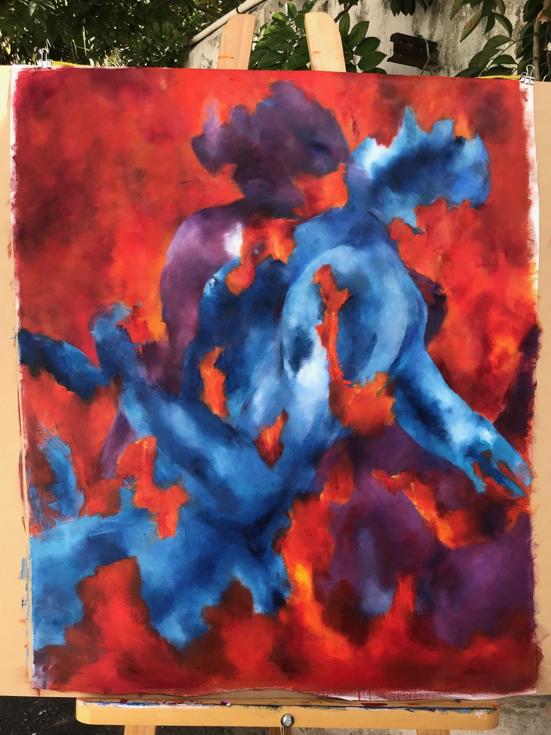 The colours and energy of the paintings surprised me and forcefully brought the concepts to life. The body of work followed a pattern of introspection to opening up and discussing relationship issues that I was going through.