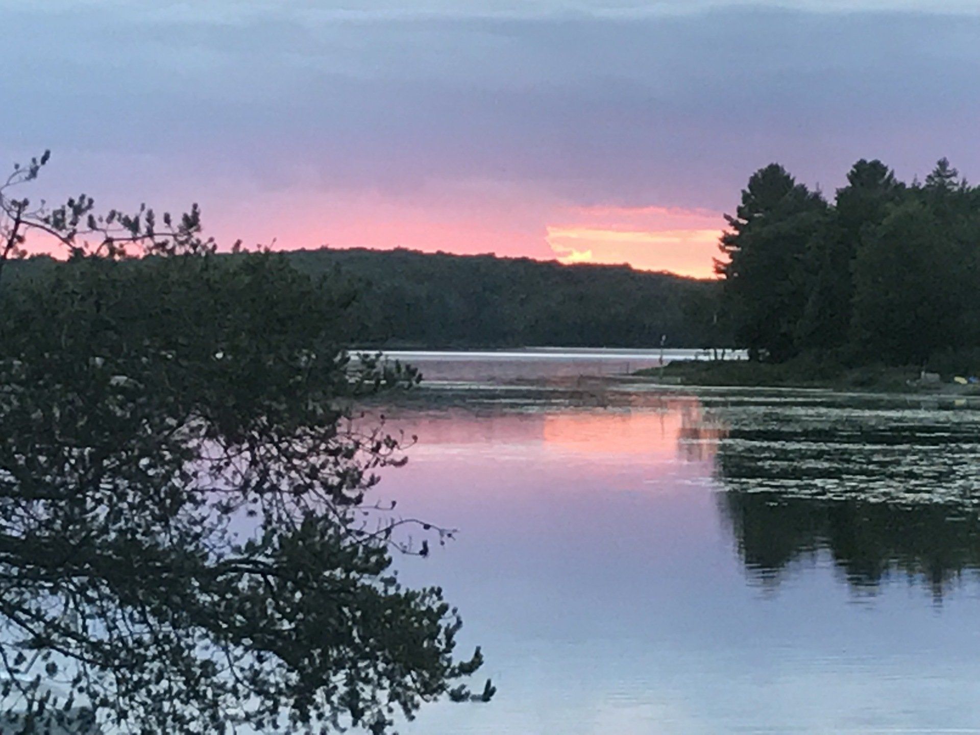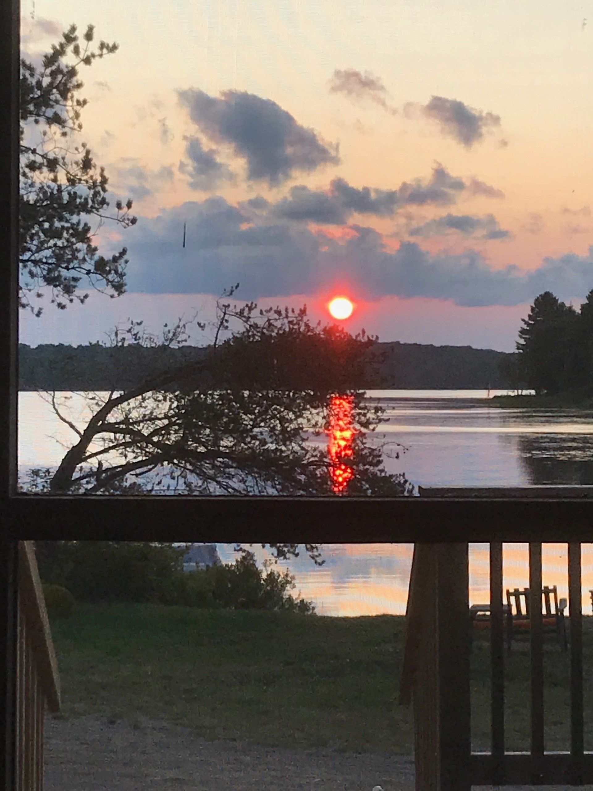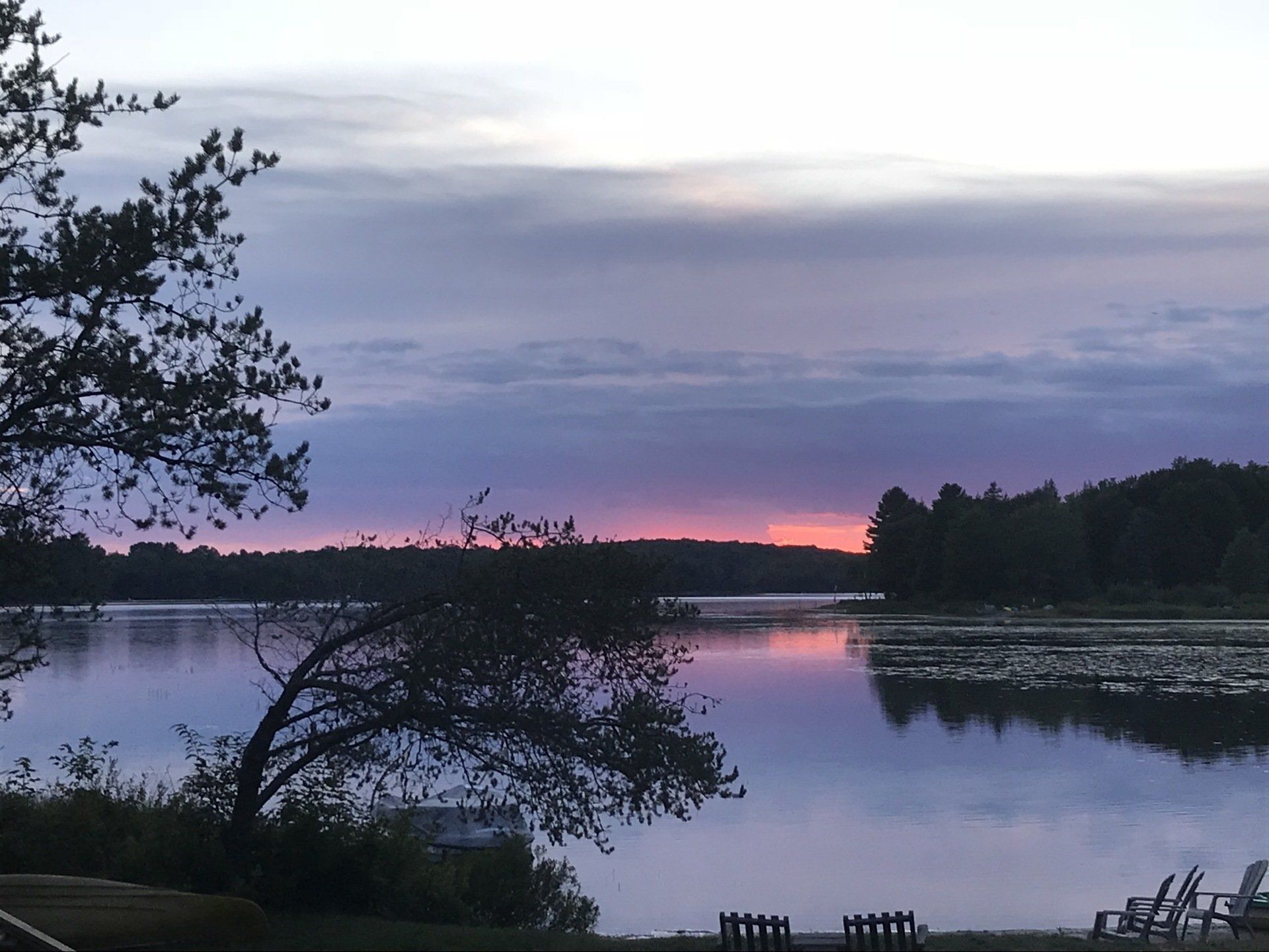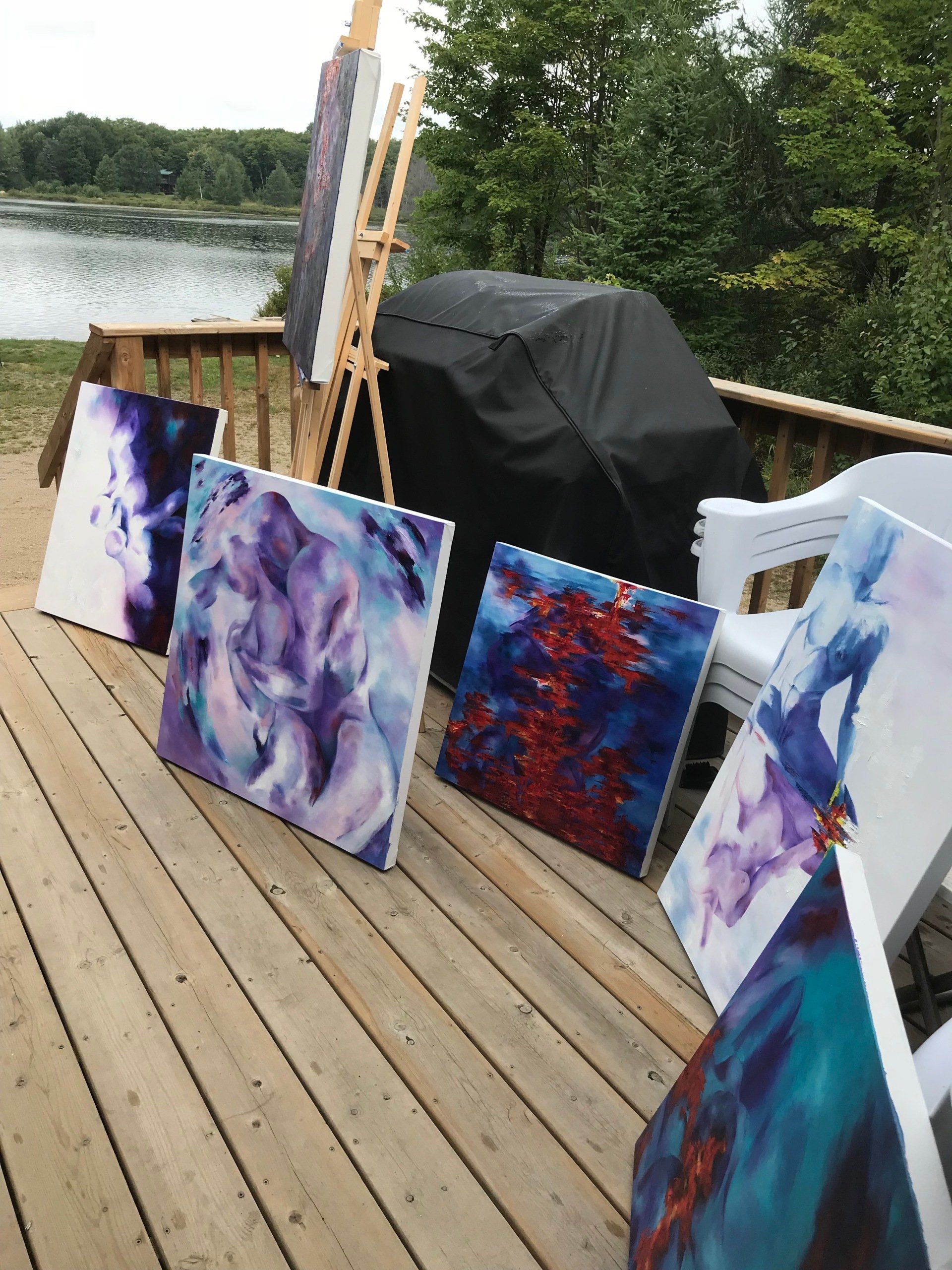 My mom was born and raised in Muskoka and when she passed a few years ago I felt drawn to retreat and spend some time working in this area. This particular retreat in 2018 treated me to spectacular sunsets and beautiful days (and I was able to bring my studio cat 'Smudge'). The colours in the sky and water directly influenced the art that I created.