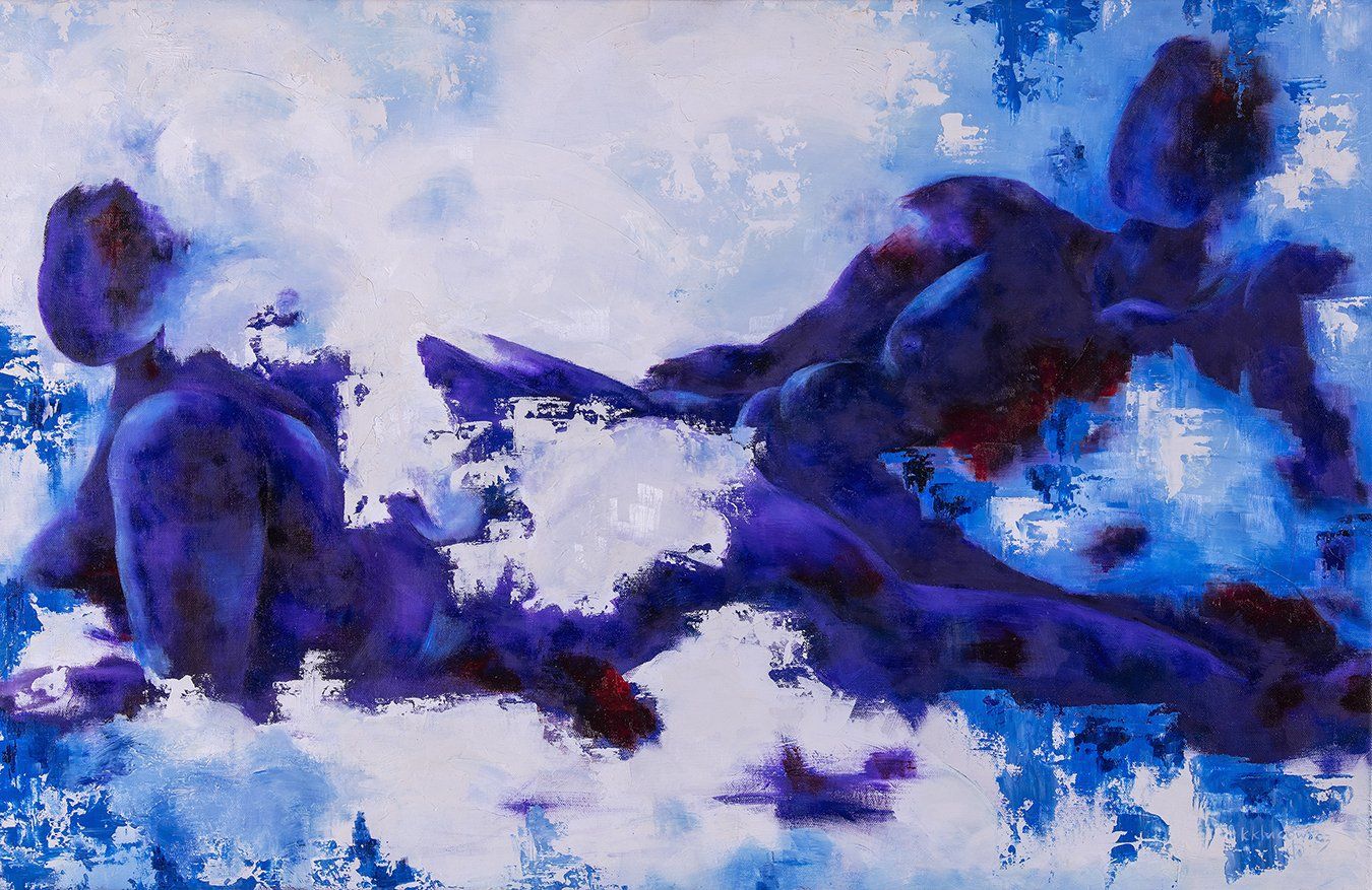 suspended, diptych, oil on birchwood, set of 2, 48x24"/122x61cm